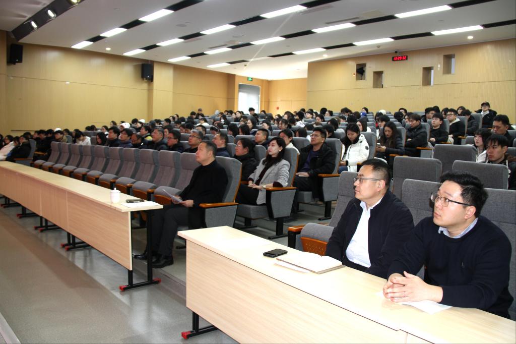 董占军分管部门、联系单位的党员干部,以及各二级学院研究生参加报告会。