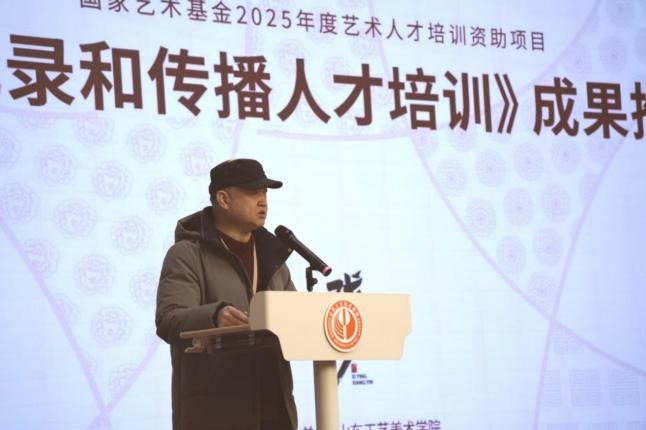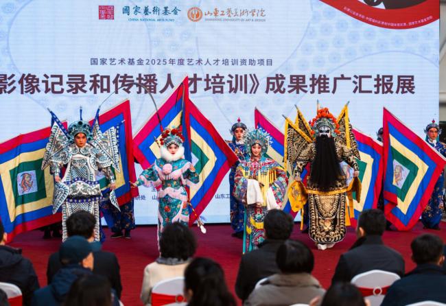1月12日,“戏影乡音:国家艺术基金2025年度艺术人才培训资助项目《戏曲影像记录和传播人才培训》成果推广汇报展”在山东工艺美术学院美术馆开展。山东工艺美术学院院长董占军出席活动并致辞,副院长孔亮主持展览开幕式,党委委员、宣传部部长孙磊出席活动。